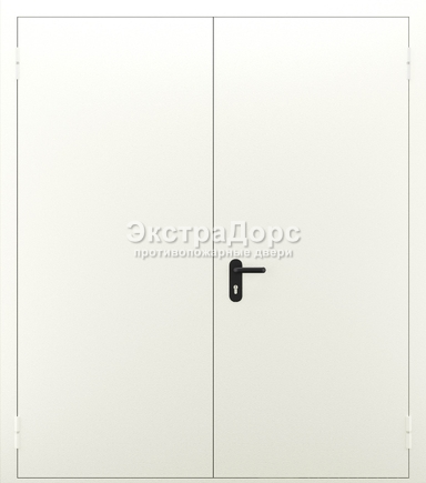 Металлическая противопожарная дверь ДМП-01-30 двупольная белая с огнестойкой ручкой в Щёлково