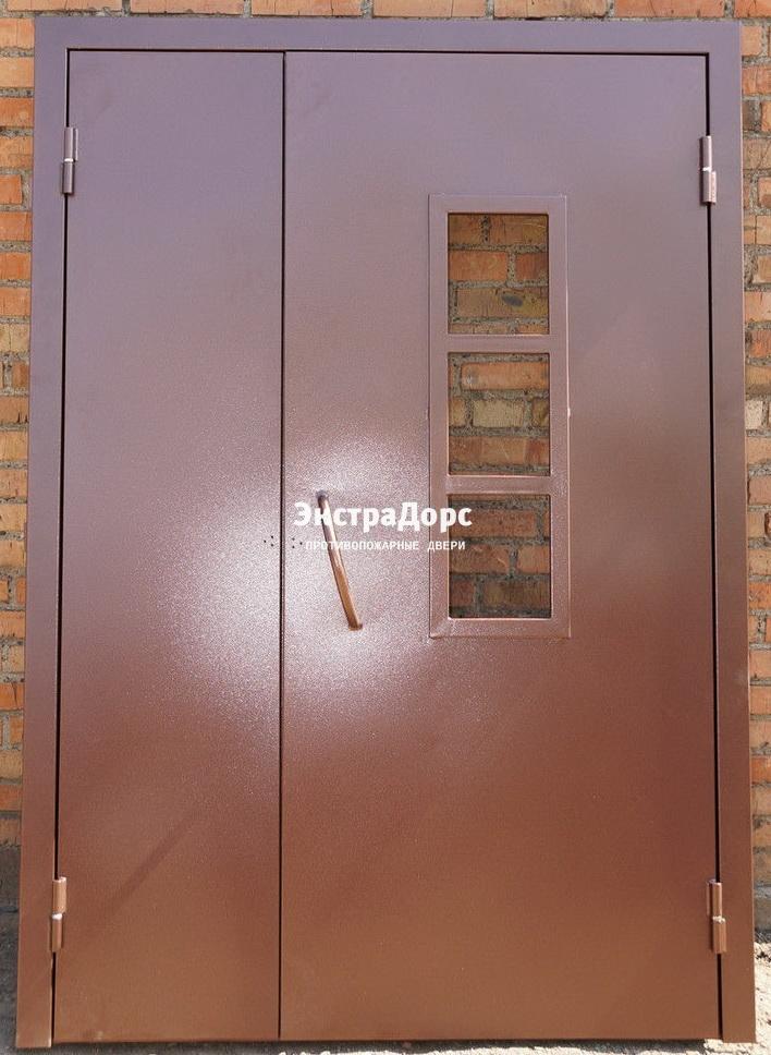 Противопожарная дверь двупольная анти-дым со стеклом, порошковая покраска в Щёлково