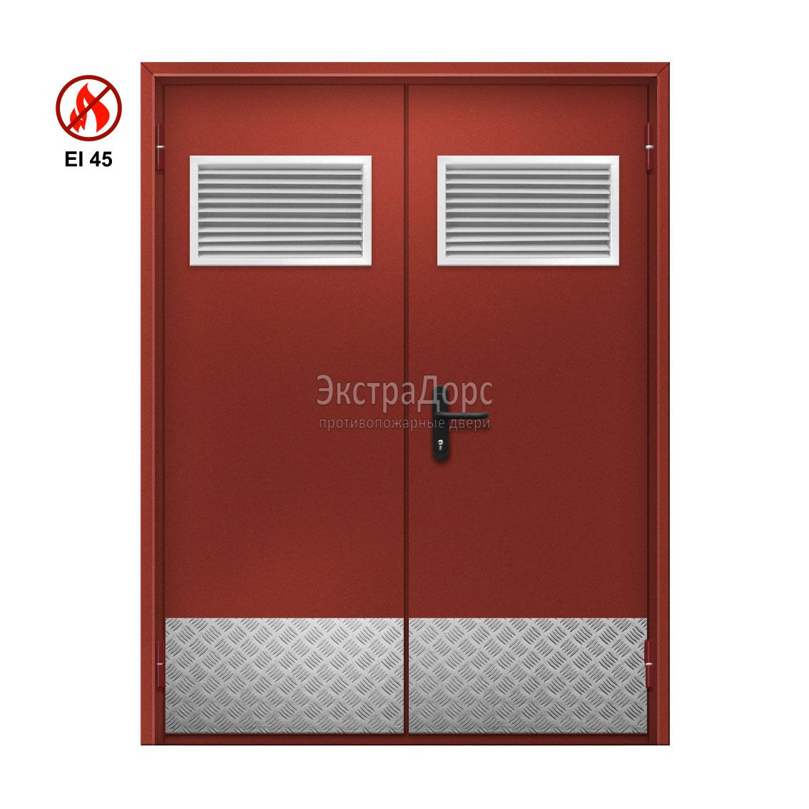 Двупольная огнестойкая дверь EI 45 ДГ-02-EI45 ДП123 двупольная глухая с решеткой в Щёлково