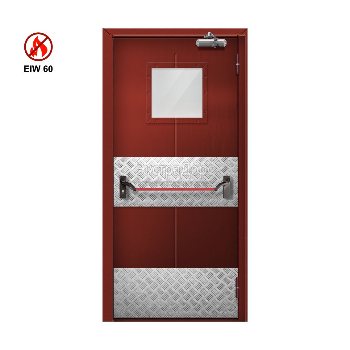 Дверь противопожарная металлическая однопольная EIW 60 ДМП-01-EIW-60 ДП58 остекленная с антипаникой в Щёлково