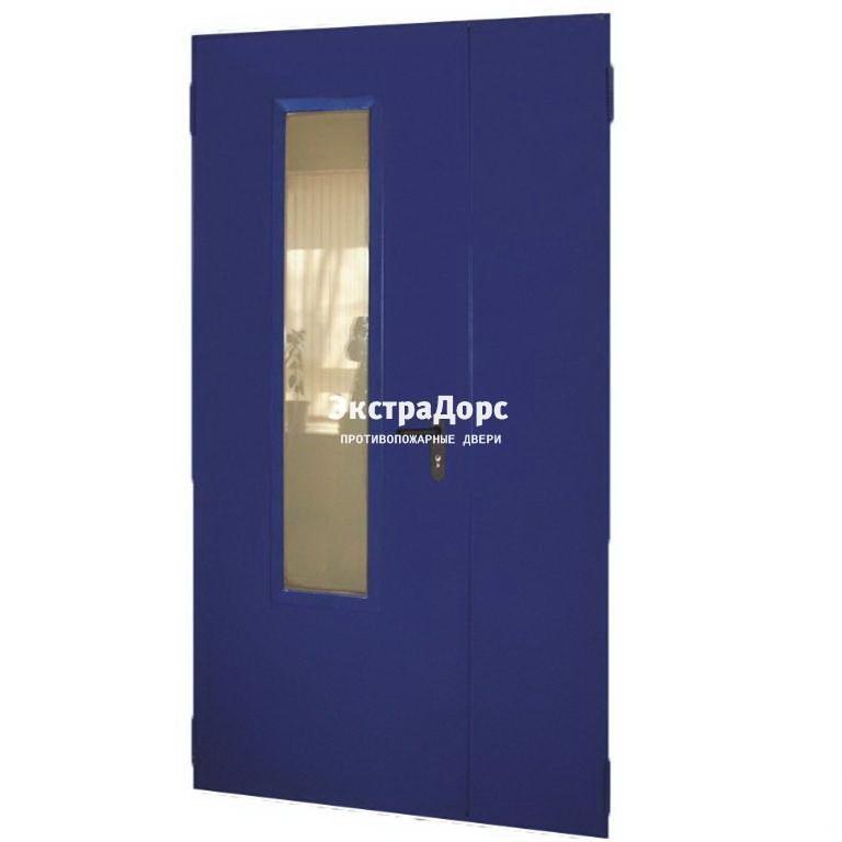Противопожарная дверь EI 90 двупольная с остеклением c выпадающим порогом