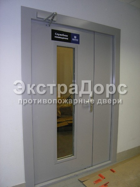 Двухстворчатая противопожарная дверь с прямоугольным стеклом в Щёлково