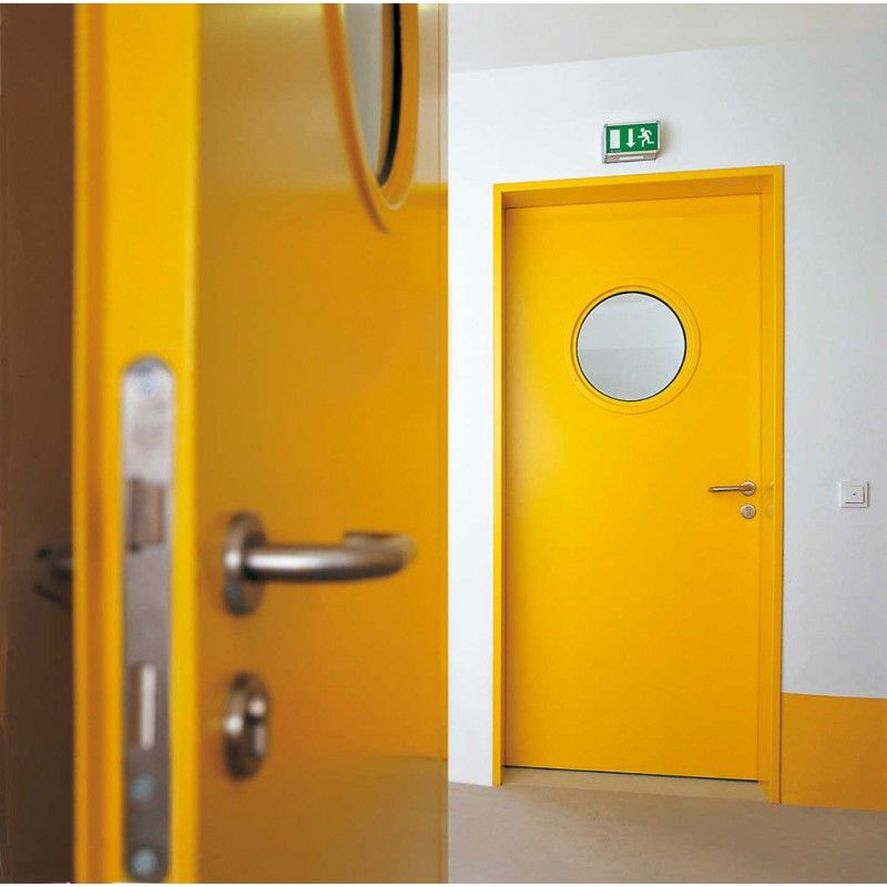 Противопожарная алюминиевая дверь со стеклом желтого цвета в Щёлково