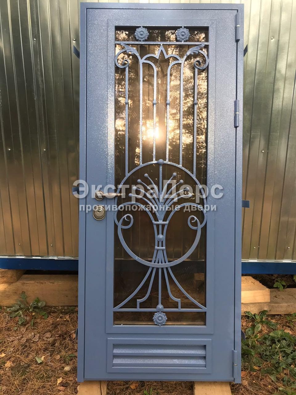 Остекленная противопожарная дверь с вентиляционной решеткой и ковкой в Щёлково