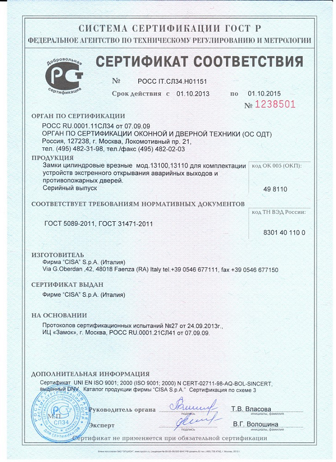 СЕРТИФИКАТЫ НА ПРОТИВОПОЖАРНЫЕ ДВЕРИ И ЗАМКИ